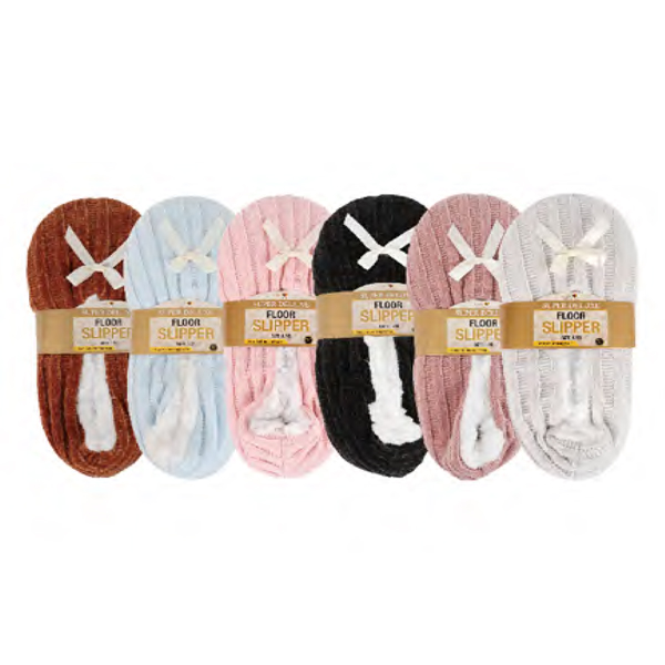 Floor Slipper Socks With Non Skid Bottoms , 1 Pair/Card Case Pack 72